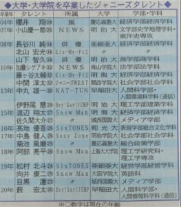 というのも、過去に中日スポーツで大学・大学院を卒業したジャニーズタレントの一覧が公表。